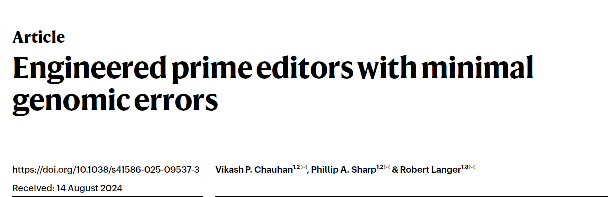 Chauhan, V. P., Sharp, P. A. & Langer, R. Engineered prime editors with minimal genomic errors. Nature (2025) doi:10.1038/s41586-025-09537-3.