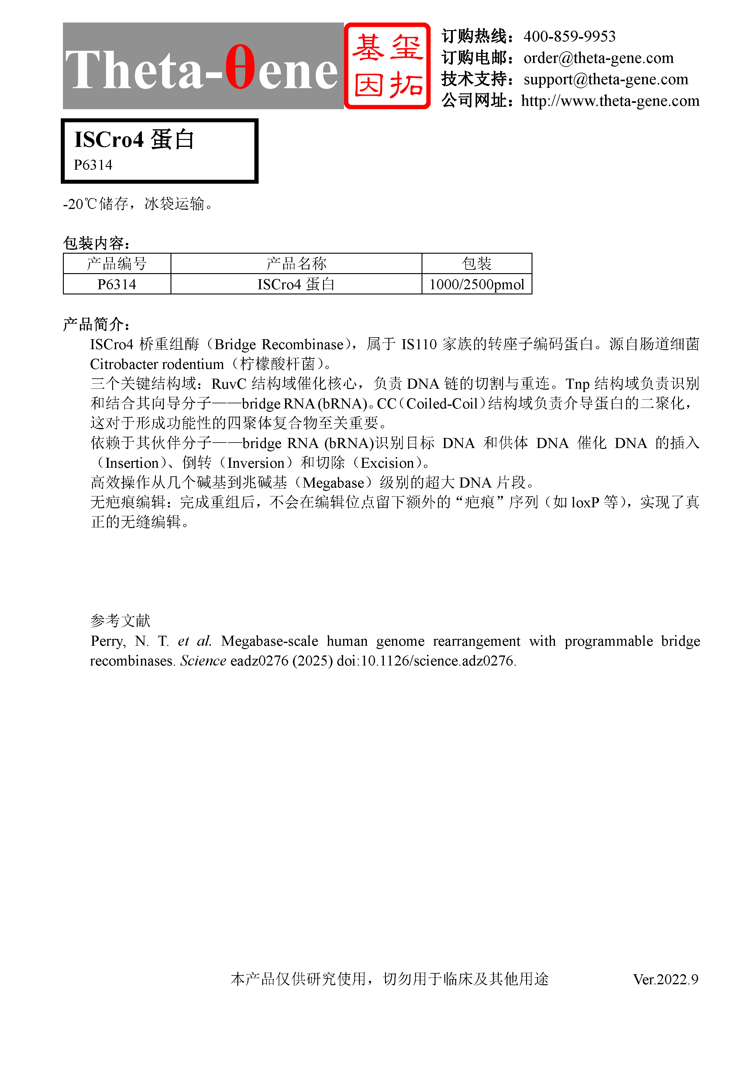 ISCro4桥重组酶(Bridge Recombinase),属于IS110家族的转座子编码蛋白。源自肠道细菌 Citrobacter rodentium(柠檬酸杆菌)。