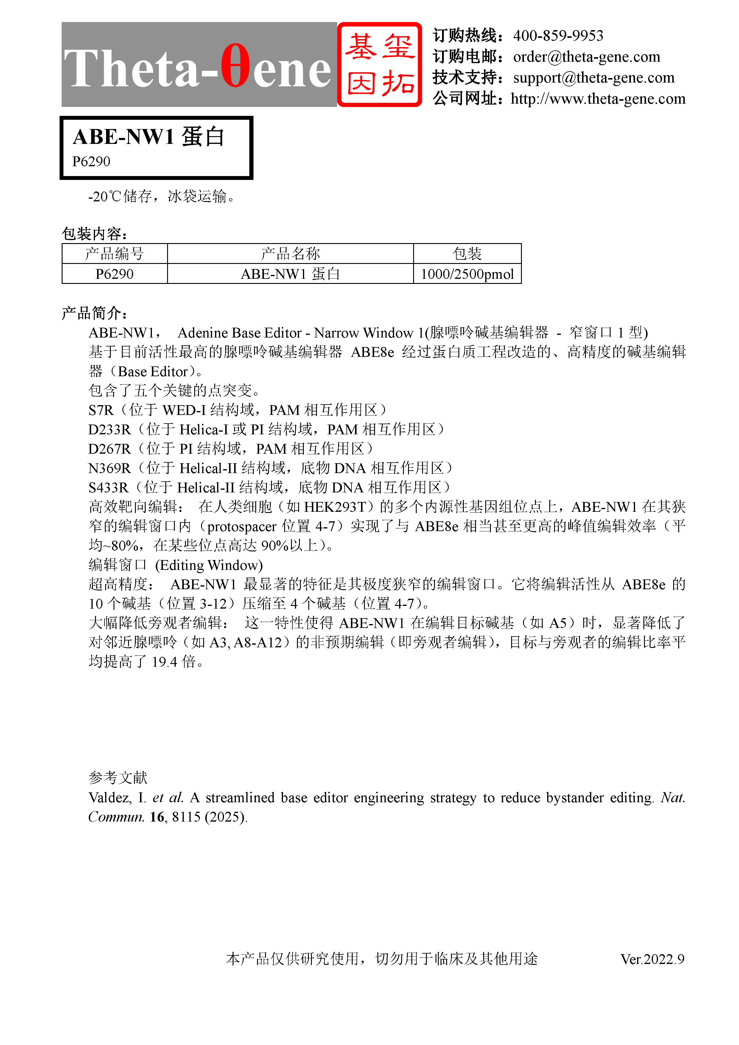 ABE-NW1, Adenine Base Editor - Narrow Window 1(腺嘌呤碱基编辑器 - 窄窗口1型)