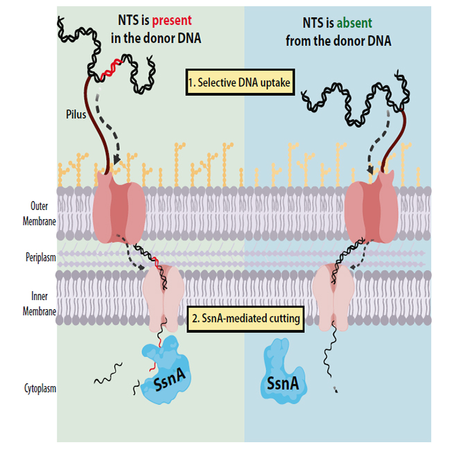 该研究揭示了SsnA在细菌中的天然生物学功能——调控水平基因转移(HGT)中的自然转化过程。