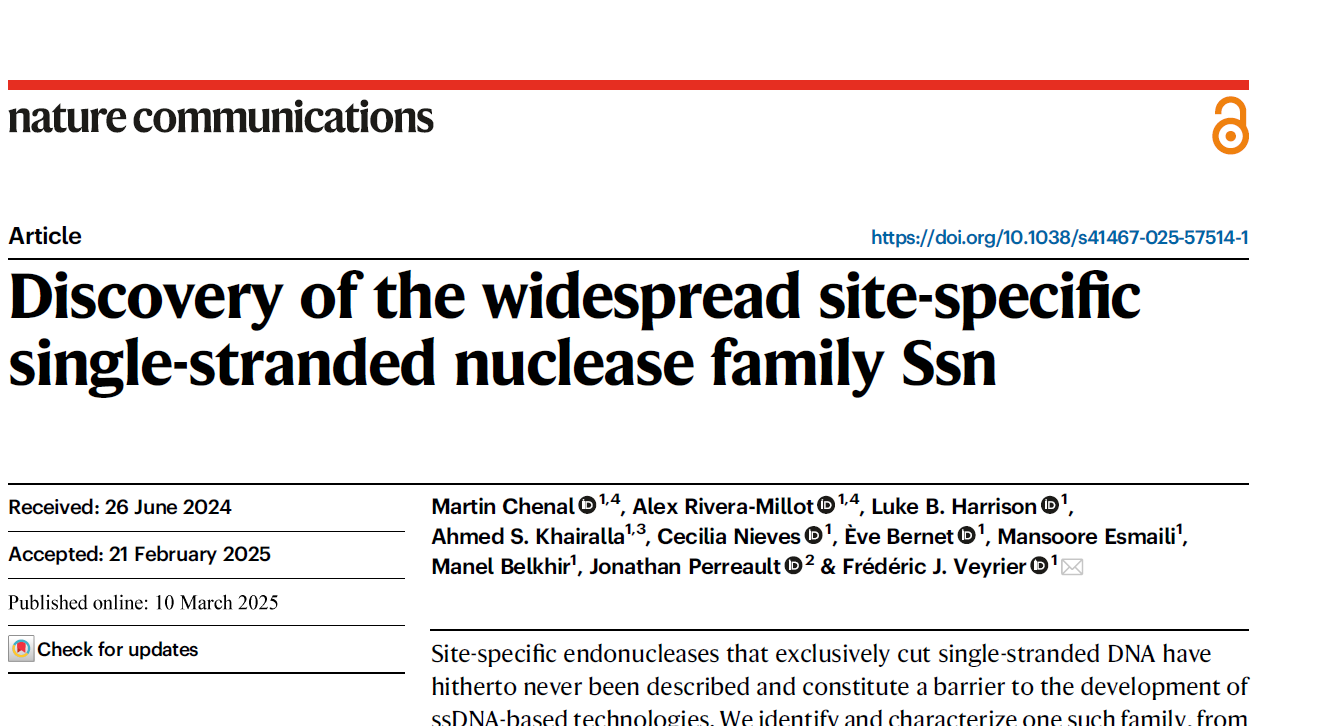本研究最核心的发现是首次鉴定并表征了一个全新的核酸酶家族——Ssn(Site-specific single-stranded nuclease)。该家族具有以下革命性特性: